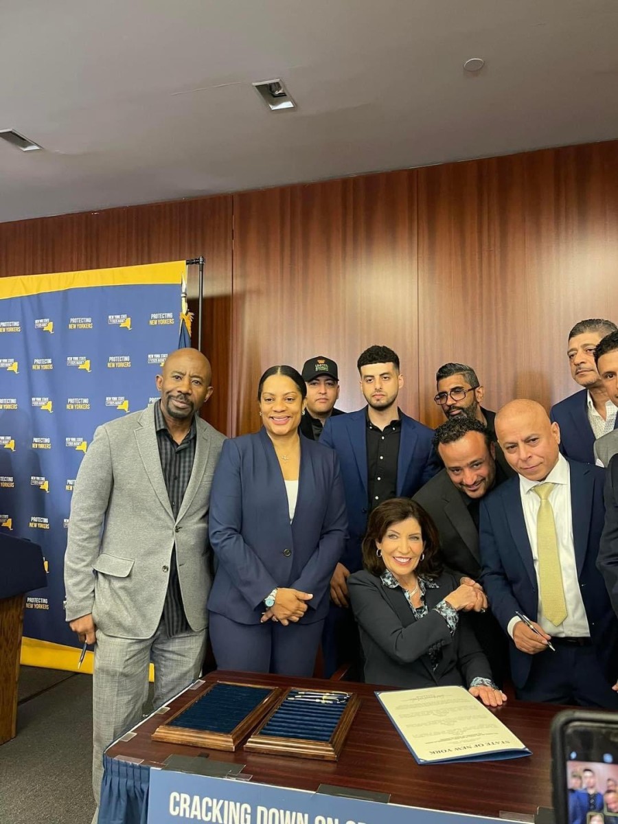 صورة من حفل توقيع قرار حماية المتاجر الصغيرة والعاملين فيها بحضور جمع كبير من ابناء الجالية اليمنية ويترأسهم رئيس الجالية/ علي عبداللطيف الصايدي